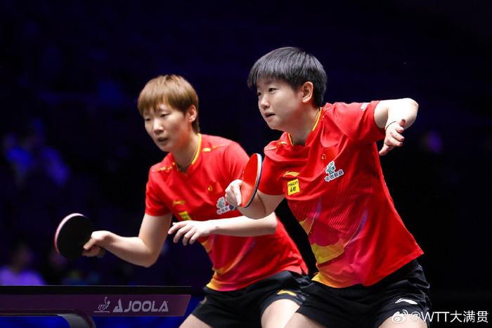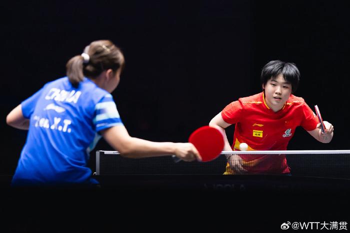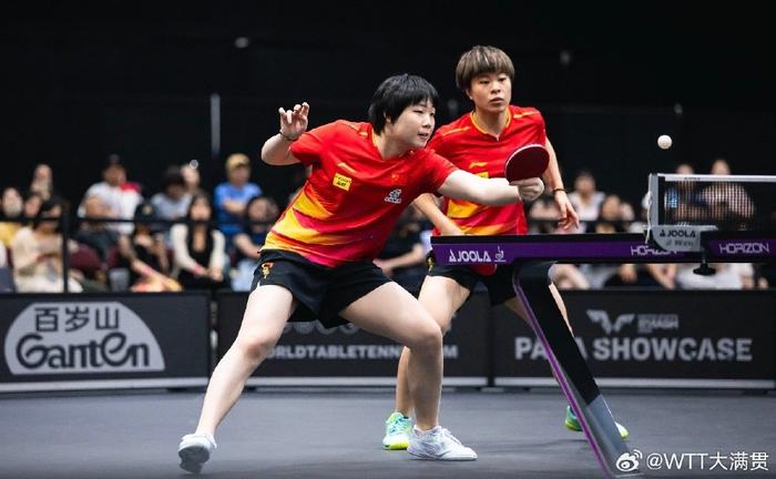 随后第二场女双半决赛,孙颖莎/王曼昱以11-7、12-10、11-5直落三局,大比分3-0战胜韩国这金娜英/柳韩娜,与王艺迪/蒯曼会师决赛,国乒包揽本站比赛女双冠亚军。